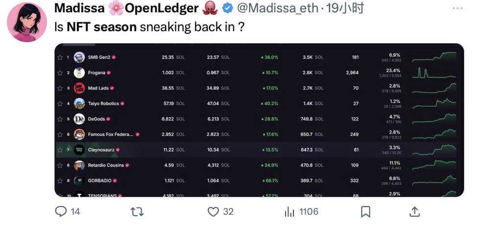 NFT piyasası net biçimde toparlanıyor. Hem işlem hacimleri hem piyasa ilgisi hızla yükseliyor. BTC ve ETH fiyatlarındaki artış kolayca dışarıdan gelen sermayeye bağlansa da, gözden çıkarılan NFT’lerin aniden canlanması birçok yatırımcının beklentilerini aştı ve sektörde yoğun tartışmaları beraberinde getirdi.