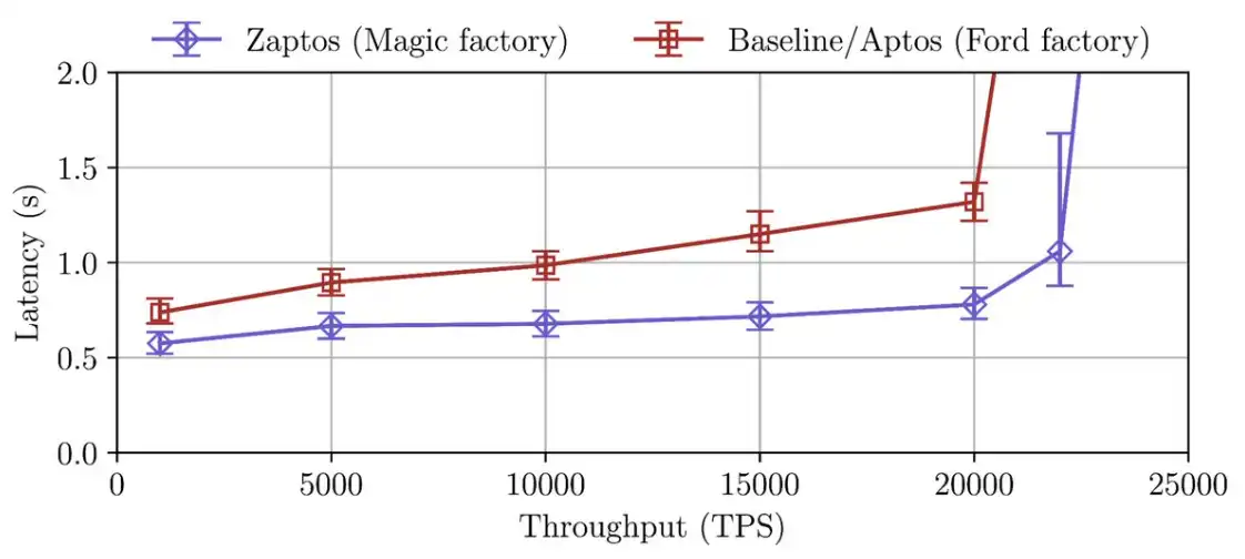 Şekil: Zaptos ve Aptos blok zincirlerinin performans karşılaştırması.