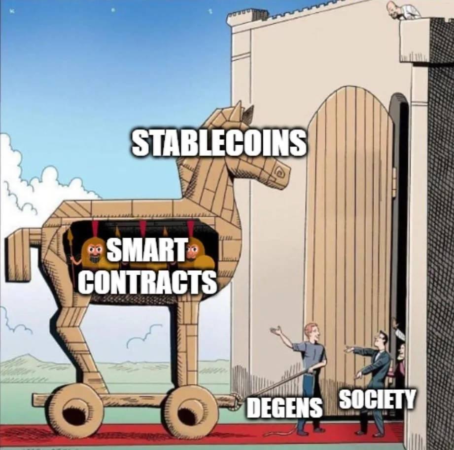 Efsaneye göre, Yunanlılar Truva’yı dev bir tahta at sayesinde fethetti. Günümüzde stablecoin’ler de aynı rolü üstleniyor: düzenleyiciler için, varlık teminatlı, “güvenli” stablecoin’ler, kripto alanına kontrollü ve risksiz giriş kapısı gibi görünüyor.
