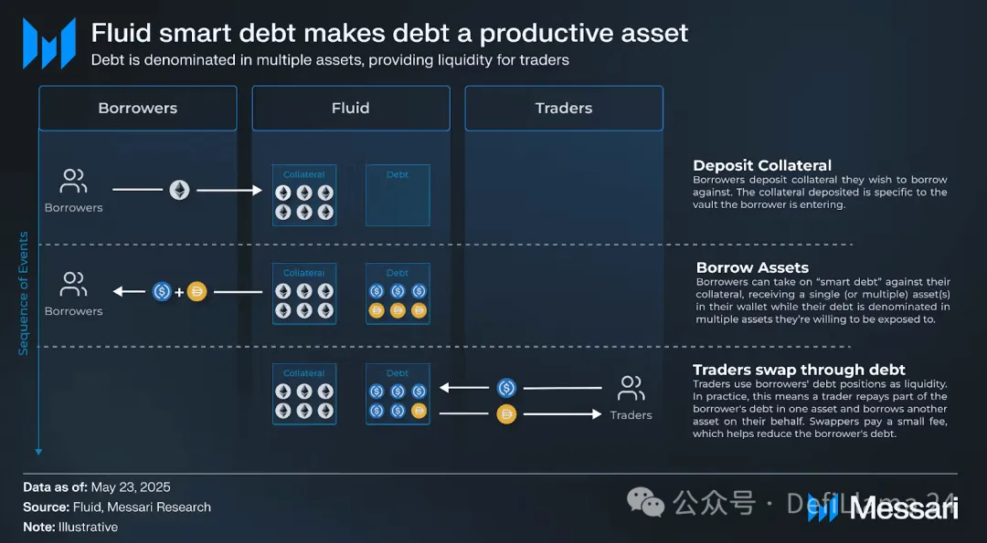 Konunun özünü kaçırmamak için burada Fluid ve EulerSwap modellerinin ayrıntılarına girmeyeceğim. Onların likidite mimarisi için neden devrim niteliğinde olduklarına odaklanalım. Fluid, “Akıllı Borç” sistemiyle borçlanmayı doğrudan likiditeye çeviren bir model geliştirdi. Bir kullanıcının ETH’yi teminat gösterip USDC borçlandığını hayal edin. Kullanıcı sadece USDC almak zorunda mı? Hayır; asıl istediği güvenilir, ABD Doları’na sabitlenmiş bir stabilcoin. USDT de onun için aynı işi görebilir. Akıllı Borç sayesinde bu mümkün hale geliyor. Bu kasalarda borçlular, portföylerinde oranı sürekli değişen bir USDC ve USDT karışımı alıyorlar: Kullanıcının borcu, artık doğrudan USDC/USDT havuzuna likidite olarak akıyor. Borçlular için bu, genellikle faiz giderini sıfırlayan işlem ücretlerinden ek gelir elde ederek daha düşük borçlanma maliyeti anlamına geliyor.