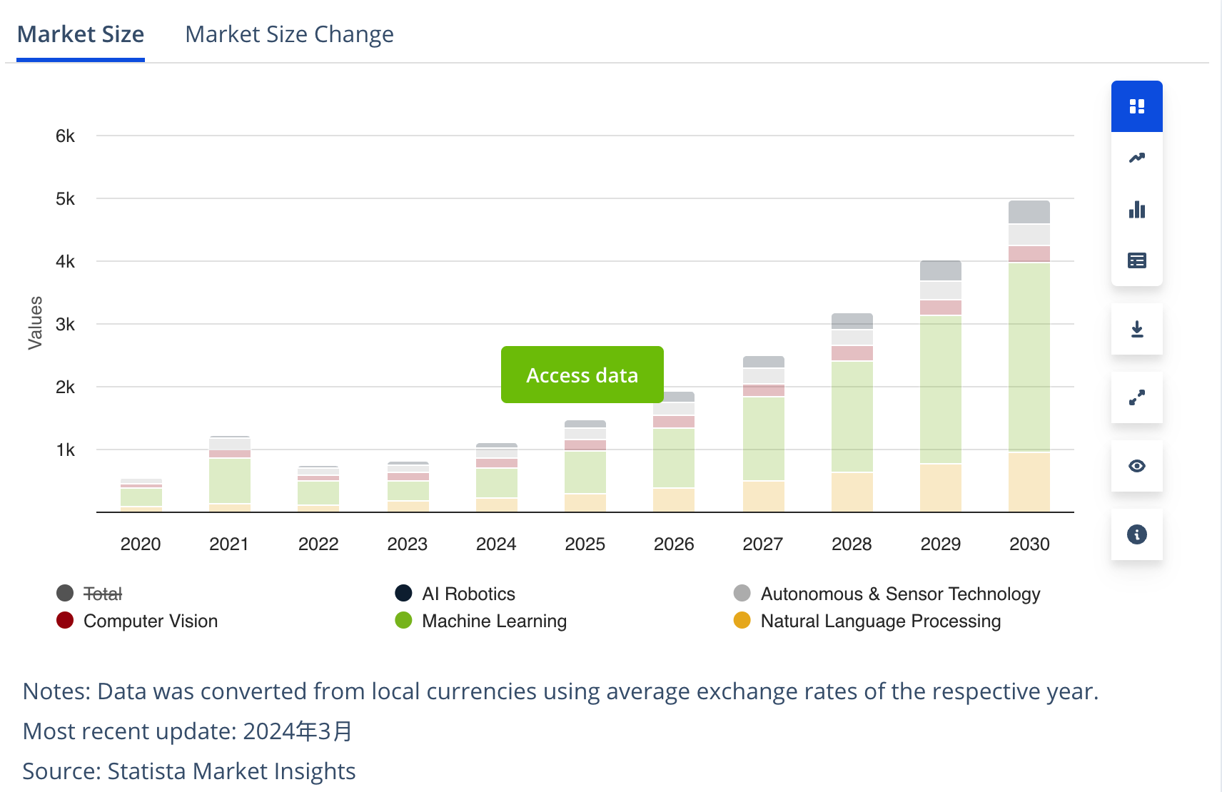 Kaynak: https://www.statista.com/outlook/tmo/artificial-intelligence/worldwide#market-size