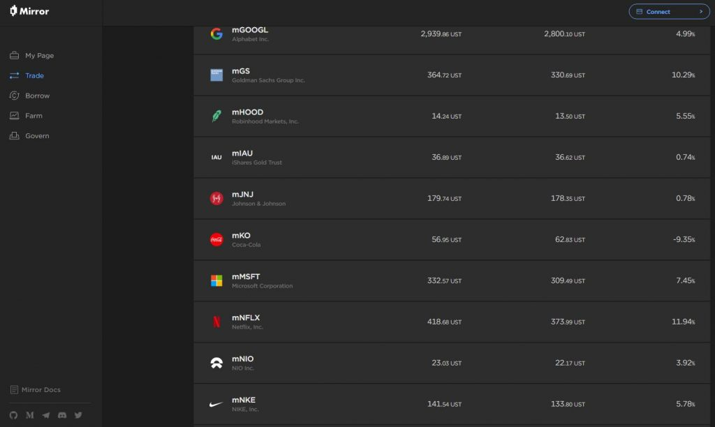 O zamanlar Luna’da Mirror adında bir protokol vardı ve Terra Station’da birkaç dolarlık UST ile KYC olmadan, hesap açmadan Apple hisse senedine karşılık gelen mAAPL’yi mintledim; böylece aracıyı atlayarak Apple’ın hisse fiyatını ilk kez deneyimledim.