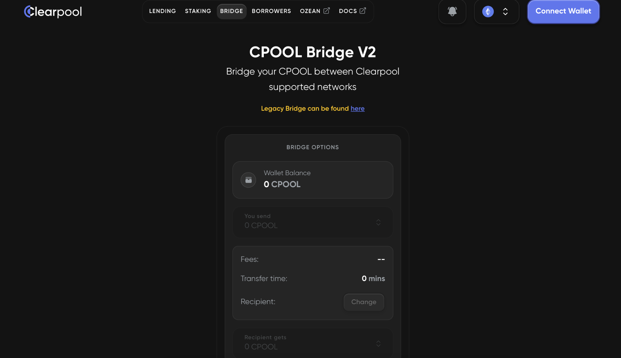 Clearpool Bridge (köprü), platformun birlikte çalışabilirlik ve esnekliğe olan bağlılığının bir göstergesidir; CPOOL token’larının Ethereum, Polygon ve diğer blokzincir ağları arasında sorunsuz biçimde transfer edilmesini sağlar. Bu özellik, likidite sağlayıcılarının ve token sahiplerinin varlıklarını farklı blokzincir ekosistemlerinde verimli şekilde yönetmelerine olanak tanır ve platformun kullanılabilirliğini ile erişilebilirliğini artırır. Denetlenmiş ve güvenli bir teknoloji altyapısıyla çalışan bu köprü sayesinde Clearpool, çoklu zincir işlemlerinden faydalanmak isteyen kullanıcılar için güvenli ve sorunsuz bir işlem süreci sunar.
