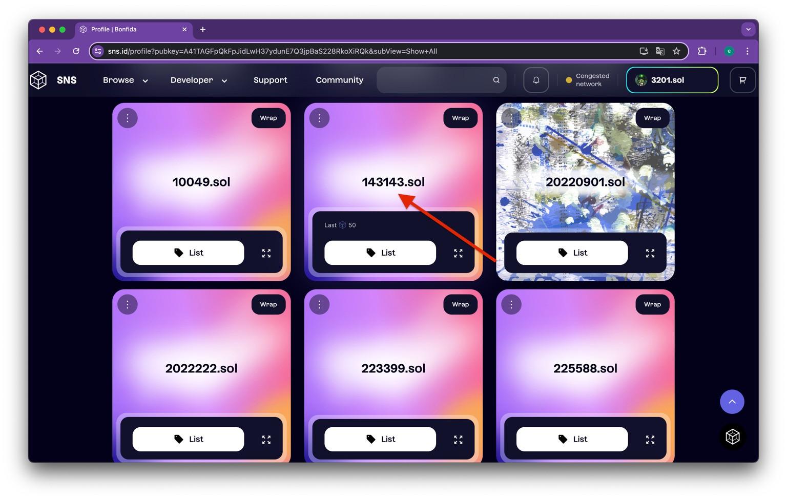 Kullanıcılar .sol alan adlarını edindikten sonra, bunları sns.id veya Magic Eden, Solanart, Tensor gibi popüler Solana NFT pazarlarında satışa çıkarabilir. Listeleme öncesinde kullanıcıların alan adlarını bir NFT’ye “wrap” etmesi gerekir; böylece alan adı işleme uygun bir varlığa dönüşür. Bu “wrap” işlemi, alan adının cüzdan adresine bağlanma ya da web sitesine yönlendirme gibi tüm işlevlerini koruyarak NFT platformlarında güvenle alınıp satılmasına olanak tanır.