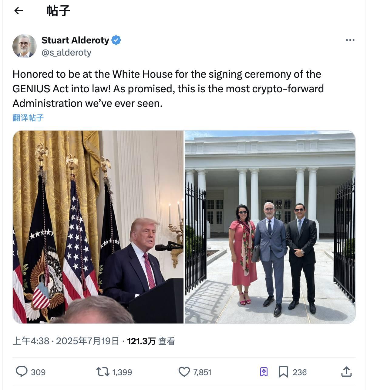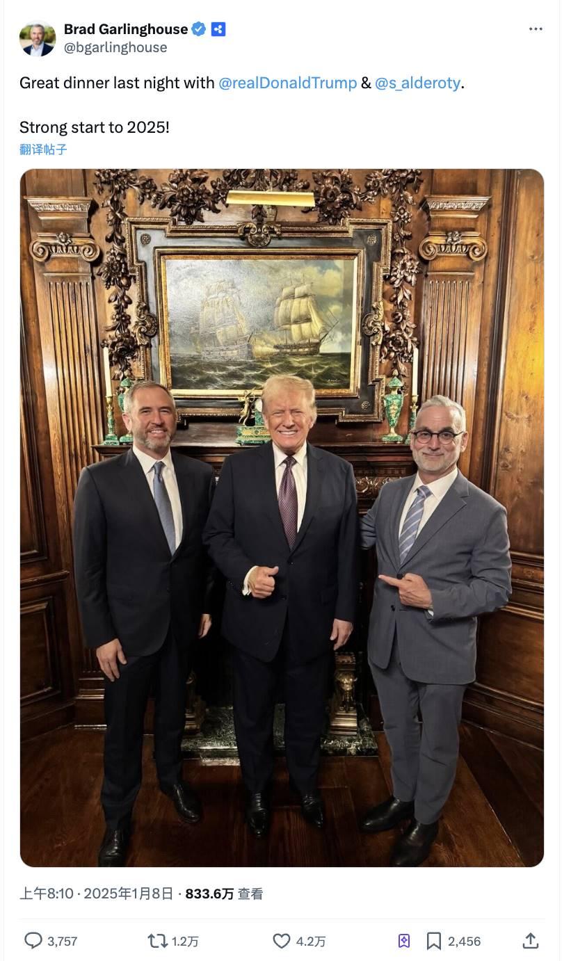 Ocak 2025’te Ripple CEO’su Brad Garlinghouse, Florida’da Trump’ın verdiği bir akşam yemeğine katıldı ve “2025’e güçlü bir başlangıç!” ifadesiyle bir fotoğraf paylaştı. 19 Temmuz’da Başkan Trump, Beyaz Saray’da Genius Yasası’nı imzaladı. Ripple’ın Baş Hukuk Sorumlusu Stuart Alderoty, davet edilen az sayıda kripto temsilcisinden biriydi.